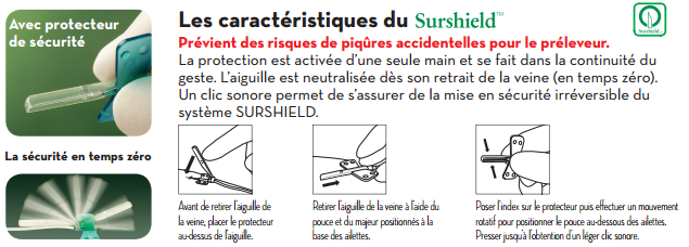 Microperfuseur à ailettes SURFLO Sécurisé, est un microperfuseur avec protecteur recouvrant l’aiguille. Il est destiné à perfuser ou prélever des liquides dans ou du système vasculaire par un abord veineux. Le protecteur recouvre l’aiguille immédiatement après le geste.
